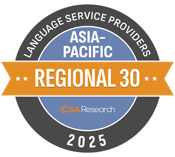 • 瑞科翻譯公司榮登 CSA Research 2025 年語言服務與技術行業亞太區域市場領導者榜單
